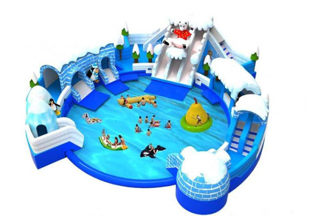 冰雪世界水滑梯以冰雪為主題,人在冰天雪地中穿越,從而抵達人景合一的境地;該款產(chǎn)品配有多個不同高度的滑梯,不同玩耍人群的需求。樂園中配有一個充氣水池,水池中放些水上浮具,如香蕉船、水狗、冰山等,讓現(xiàn)場的玩法豐厚。